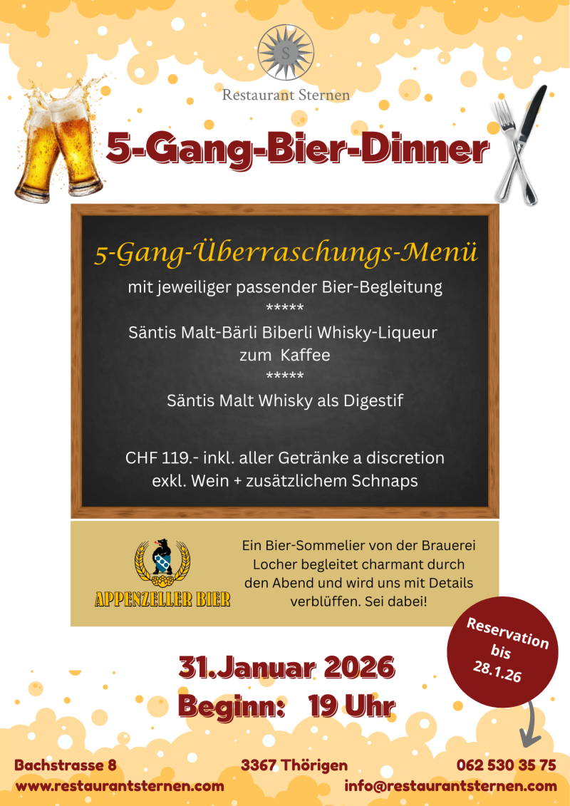 Möchten Sie an einem unserer Themenabende teilnehmen? Reservieren Sie noch heute Ihren Tisch und erleben Sie unvergessliche kulinarische Momente im Restaurant Sternen.